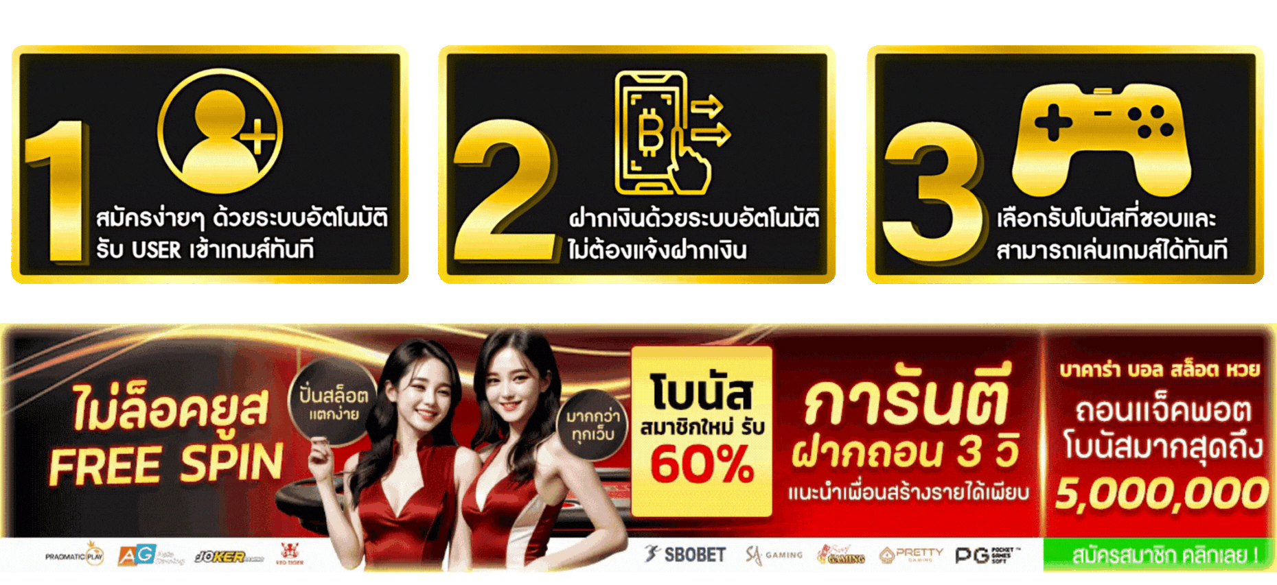 นอกจากนี้ ยังมีโบนัสต้อนรับสุดพิเศษสำหรับการฝากเงินครั้งแรก รับโบนัสเพิ่มทันที 50% สูงสุดถึง 1,000 บาท เพียงฝากขั้นต่ำ 100 บาทเท่านั้น ที่สำคัญคือเงื่อนไขการทำเทิร์นโอเวอร์ก็ไม่ยุ่งยาก เพียงทำยอดเล่น 3 เท่าของยอดฝาก ก็สามารถถอนเงินได้ทันที